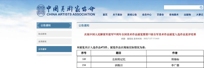 为喜迎党的二十大顺利召开,庆祝中国人民解放军建军95周年,由文化和旅游部艺术司、中央军委政治工作部宣传局、中国美术家协会共同主办,国防大学军事文化院、中国文联美术艺术中心承办“庆祝中国人民解放军建军95周年全国美术作品展览暨第15届全军美术作品展览”。经过初评、复评后结果公示,我院李广德教授油画作品《训练日》和郑海标教授油画作品《尘封的记忆》入选本次展览。