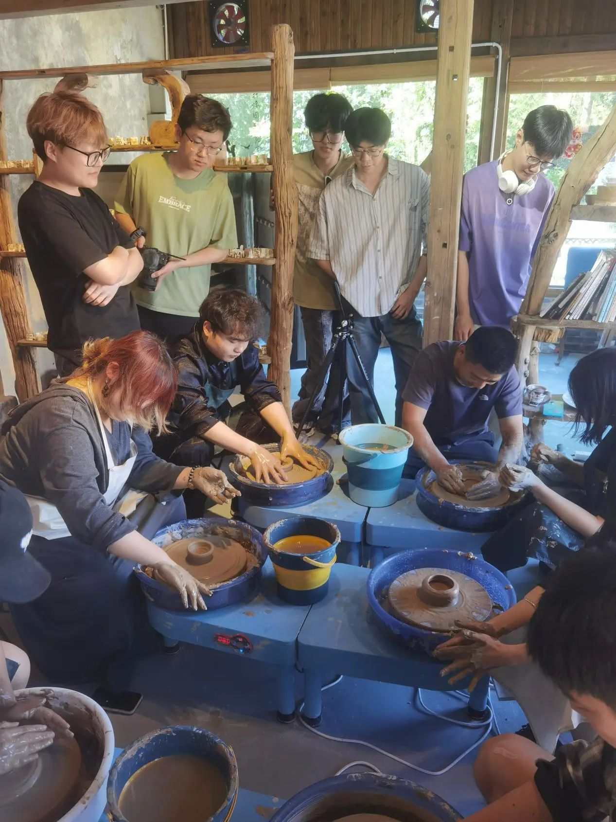 除了扎染之外,师生们还参观了当地的陶艺工坊,并亲手体验了陶艺的制作过程。陶艺,是一种古老的艺术形式,它以泥土为原料,经过塑形、烧制等工艺制成各种造型精美的陶瓷制品。