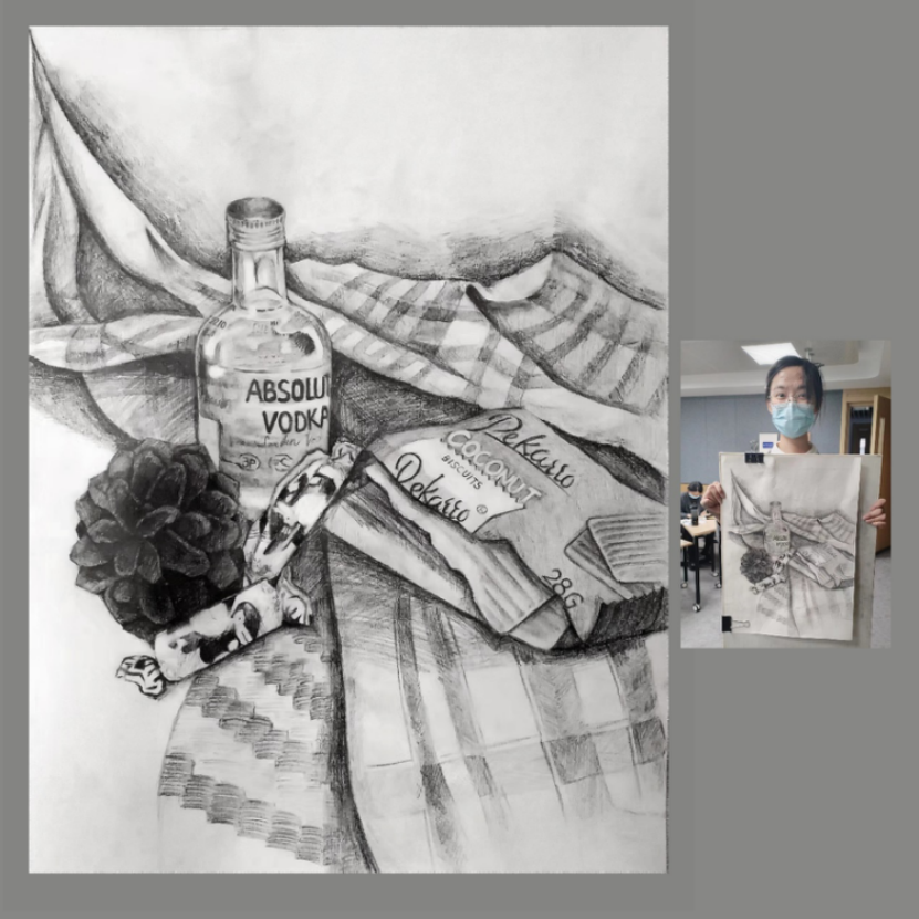 以“发挥美术铸魂育人功能,创作实践收获审美体验”为主旨,来自法学院、行政学院、化学学院、商学院、计算机科学与技术学院、植物科学学院、电子科学与工程学院等多个学院不同专业学生参与本次课程。经过一个学期的理论学习与专业训练,学生们的素描作品质量得到提高,具备一些可欣赏属性。