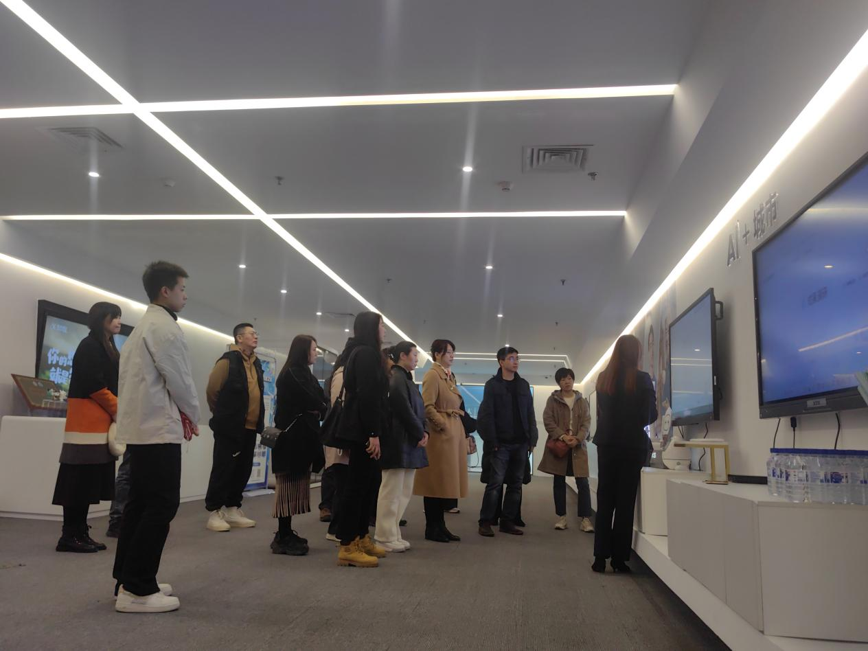 在参观过程中,围绕科大讯飞公司语言翻译、电子阅卷、AI 答题、AI 编程等核心功能展开深度交流。在工作人员的专业讲解下,教师们对语音识别技术和人工智能教育产品有了更为深刻、全面的认识。与会各民主党派教师认真听收讲解,积极讨论,重点交流了如何将AI技术和艺术专业教育相结合,促进新时代艺术教育发展。