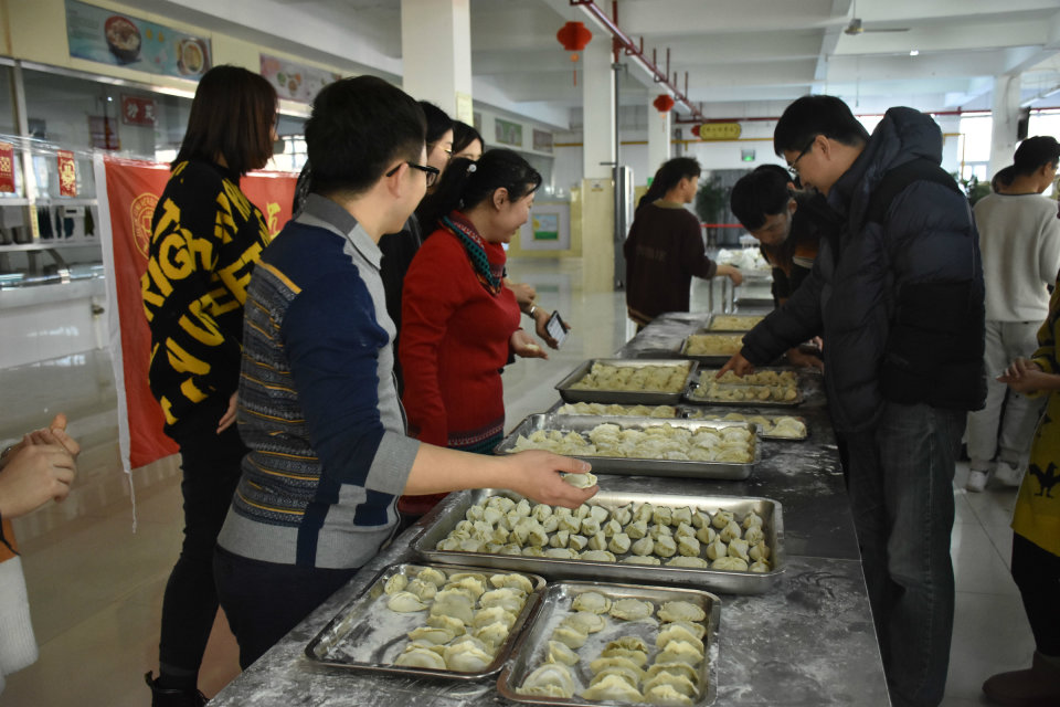 活动伊始,参加活动人员按照“以饺交心,团结共进”、“一盘饺子表真情,愿你天天开心”、“平安是皮儿,幸福是陷儿”、“热乎的饺子,温暖的心”、“冬至阳生春又来”五个主题进行分组,展开包饺子活动。分组完成后,三位老师和食堂工作人员作为评审,进行了包饺子最新颖“饺子之星”评比;限时时段,看谁包饺子最多的“最佳手速”评比和十个饺子谁先吃完的“大胃王”称号评比。才艺展示也随之开始,在同学们的歌声中热腾腾的饺子纷纷上桌。饺子里面有一个放入栗子和大枣的幸运饺子,吃到幸运饺子的同学有机会抽取红包礼物,同学们争先恐后,大家食味大开。活动过程中充满了欢声笑语,师生们其乐融融,尽显欢声笑语。