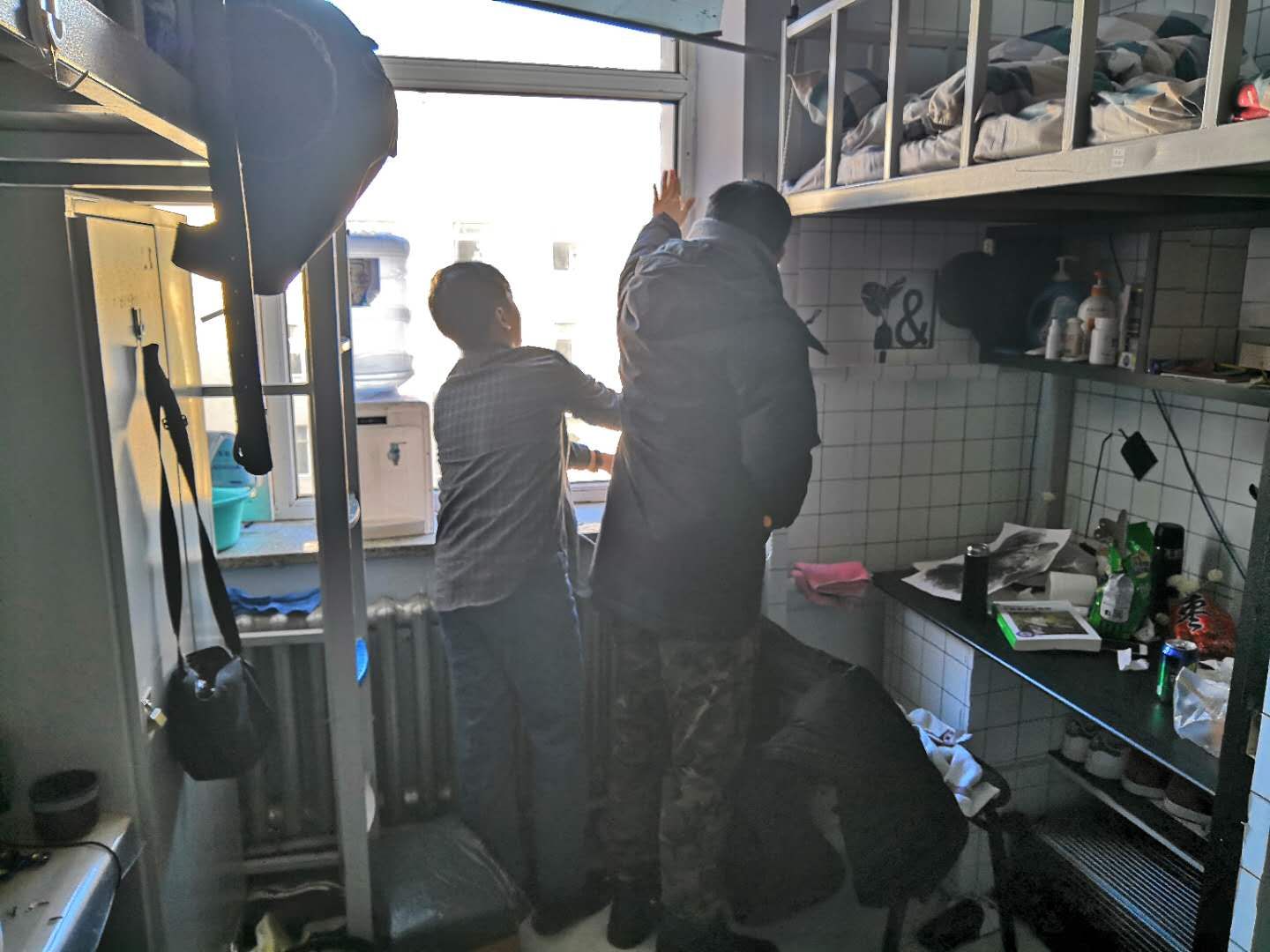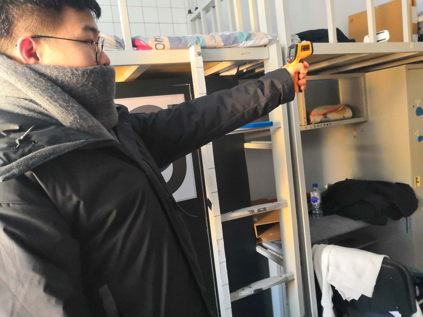 随后,同学们按照小组去各个寝室进行封窗,去各个寝室进行慰问,重点关注了上报寝室气温较低的几个寝室。同时还关心了同学们的在校学习情况和生活情况,告诉同学们要认真复习考试等等。