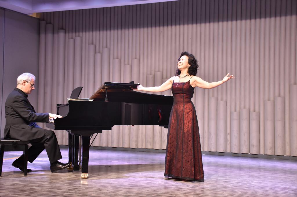 音乐会下半场,声乐套曲“被遗忘的小歌曲”、《这是心醉神迷》、《树影》、《木马》等一系列曲目在玫瑰与浪漫之声的碰撞中将音乐会推向高潮。Luigi.Marzola老师和申丹老师以贝利尼的“亲爱的伙伴们...对于我来说”——选自《梦游女》结尾。“声琴并茂”专场音乐会圆满结束,