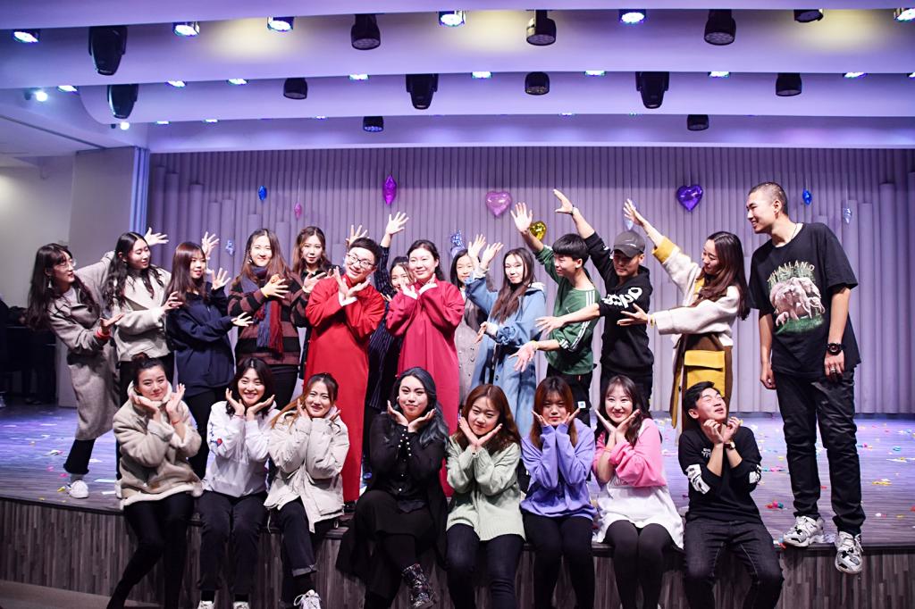 、对班级的爱表达在每一个动作当中。2017级王晗和栾欣遥用歌曲《我对自己开了一枪》《三十八度六》告诉同学每个人都是独一无二的,要尽情释放青春。绘画四班全体女生用舞蹈《Perfect tone》致敬,让观众眼前一亮,用帅气的舞姿赢得观众的欢呼喝彩。晚会最后,张磊老师、刘潇老师、刘正同学带来的相声《为艺术拼了!》,把说学逗唱这些贴近现实生活的特点和高度集中的戏剧冲突等喜剧元素,转化为可视形象,让同学们切实感受到为了艺术,辅导员在拼。团学组织成员用《大风车》《隐形的翅膀》等歌曲改编创作的舞蹈串烧展现团学团结力量!晚会中游戏环节也为同学们带来接连的惊喜,场上场下频繁的互动,有趣激烈的游戏环节,逗得同学们捧腹大笑。
