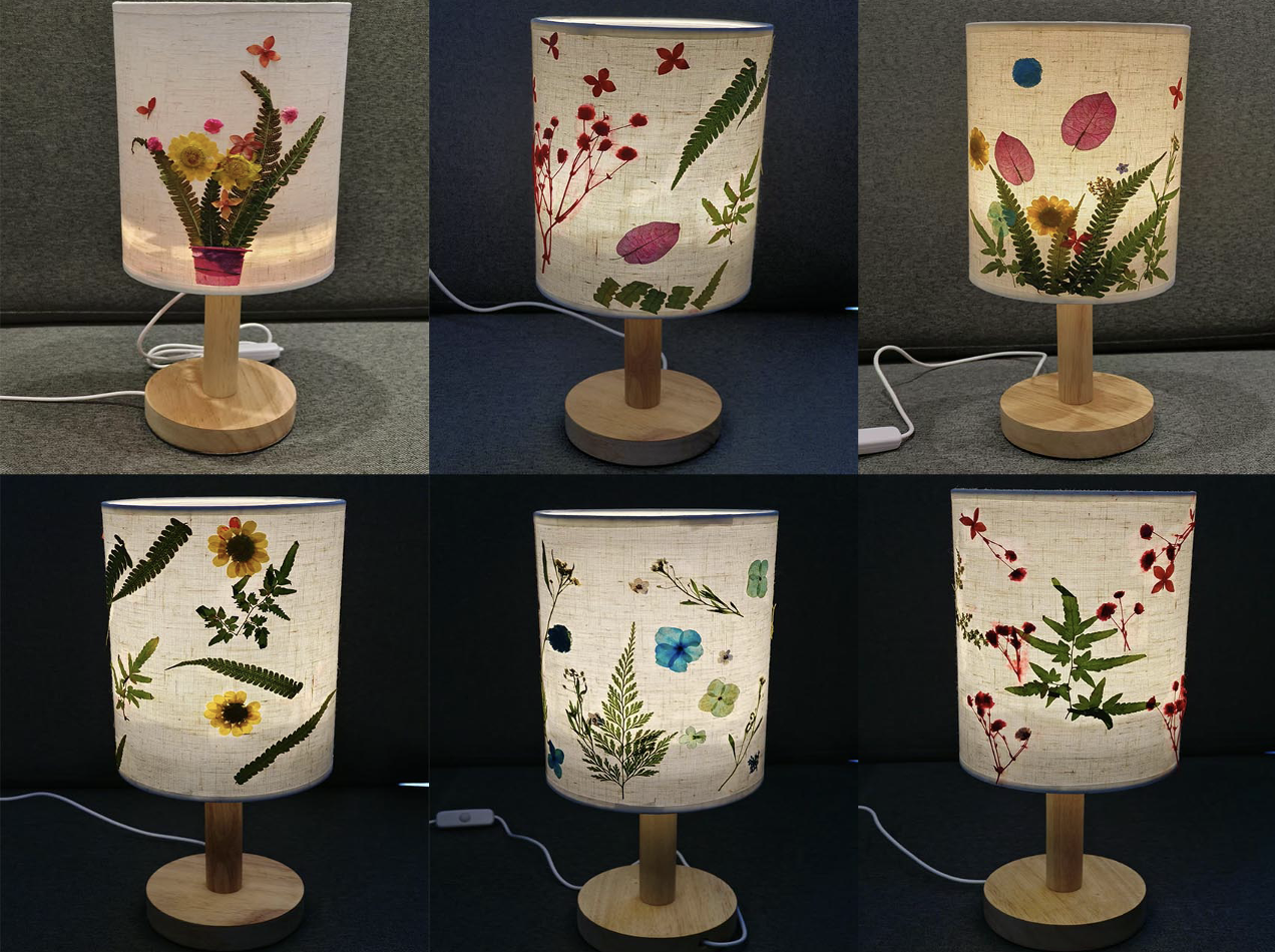 活动开始,焦雪萌同学向大家介绍了压花台灯的历史背景和工艺价值,同时讲解了制作流程。在志愿者的帮助下,同学们用植物标本在台灯上粘贴出设计图案,创造了独具个性的台灯作品。灯光与植物的结合使同学们感受到了艺术创作的乐趣。最后,同学们进行了作品展示,并互相交流了制作感悟。