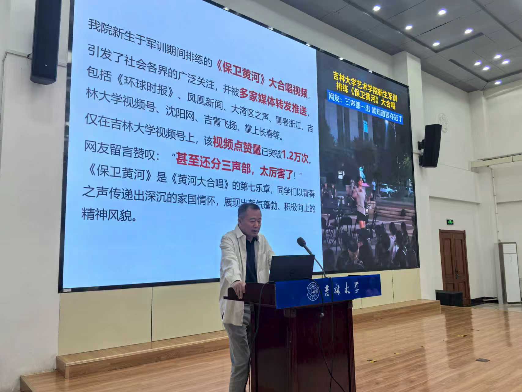 隆重举行2025级新生“院长第一课”。院长郭春方、党委书记冯彦杰、学院领导班子以及教师代表,175名本科新生和48名硕士新生齐聚一堂,共同开启崭新的艺术学习旅程。会议由党委书记冯彦杰主持。