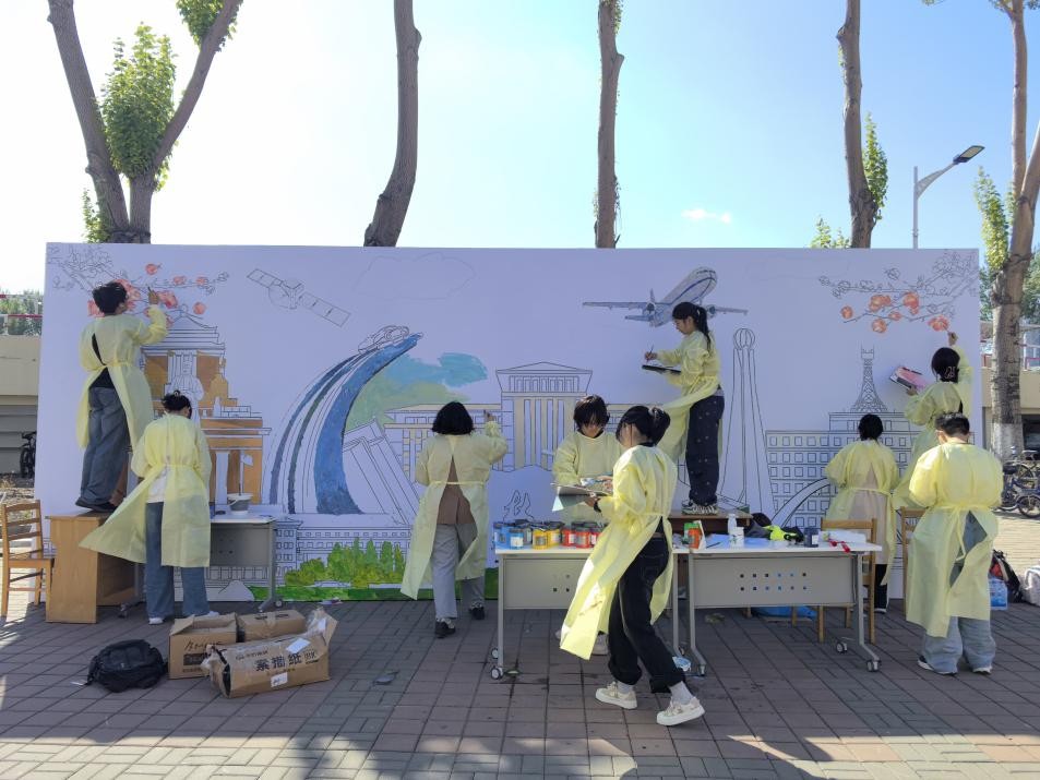 选派2025级设计、美术专业新生,与毕业校友、在校同学一起,在南岭校区十二公寓楼前开展主题墙绘活动。