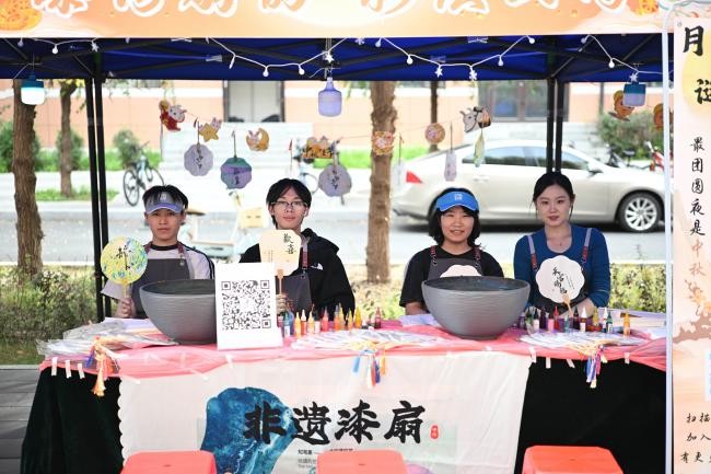 在老师和志愿者的细致引导下,各体验区秩序井然、衔接顺畅。同学们沉浸在动手创作的乐趣中。随着夜幕降临,大家手持自制花灯、扇着专属漆扇,在校园里漫步赏月。传统技艺的底蕴、青春志愿的热忱与师生相聚的温情,在月光下交融成最美的风景,也为这个中秋留下了温暖而深刻的印记。