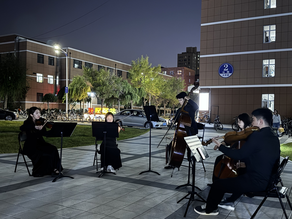 携手党委学生工作部,于大学城 “一站式” 学生社区,为 2025 级新生量身打造 “弦语、歌声、丝竹声” 秋日音乐系列活动。活动每日 18:00-19:00 开展,从弦乐演奏到美声演唱,再到民乐演绎,全程由新生参与演绎,既是新生们入学后首次集体展现艺术才华的舞台,也是他们在演奏与聆听中快速熟悉彼此、融入学院大家庭的温暖契机,悠扬乐声里满含对家国的祝福与节日的喜悦。