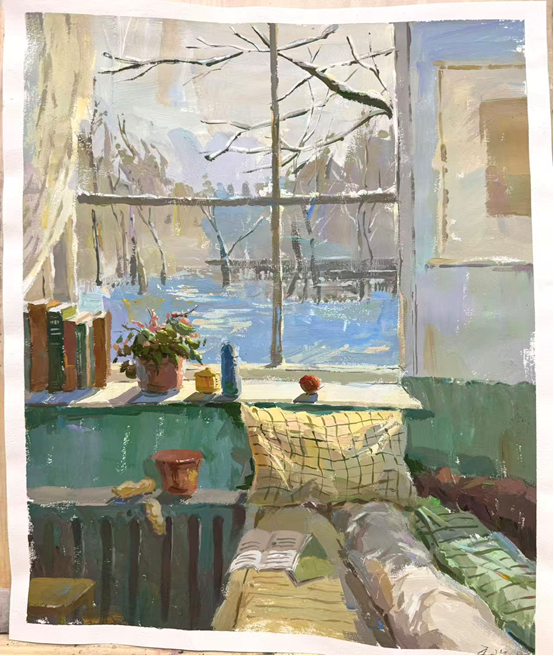 2025级绘画4班齐浩楠《窗雪》