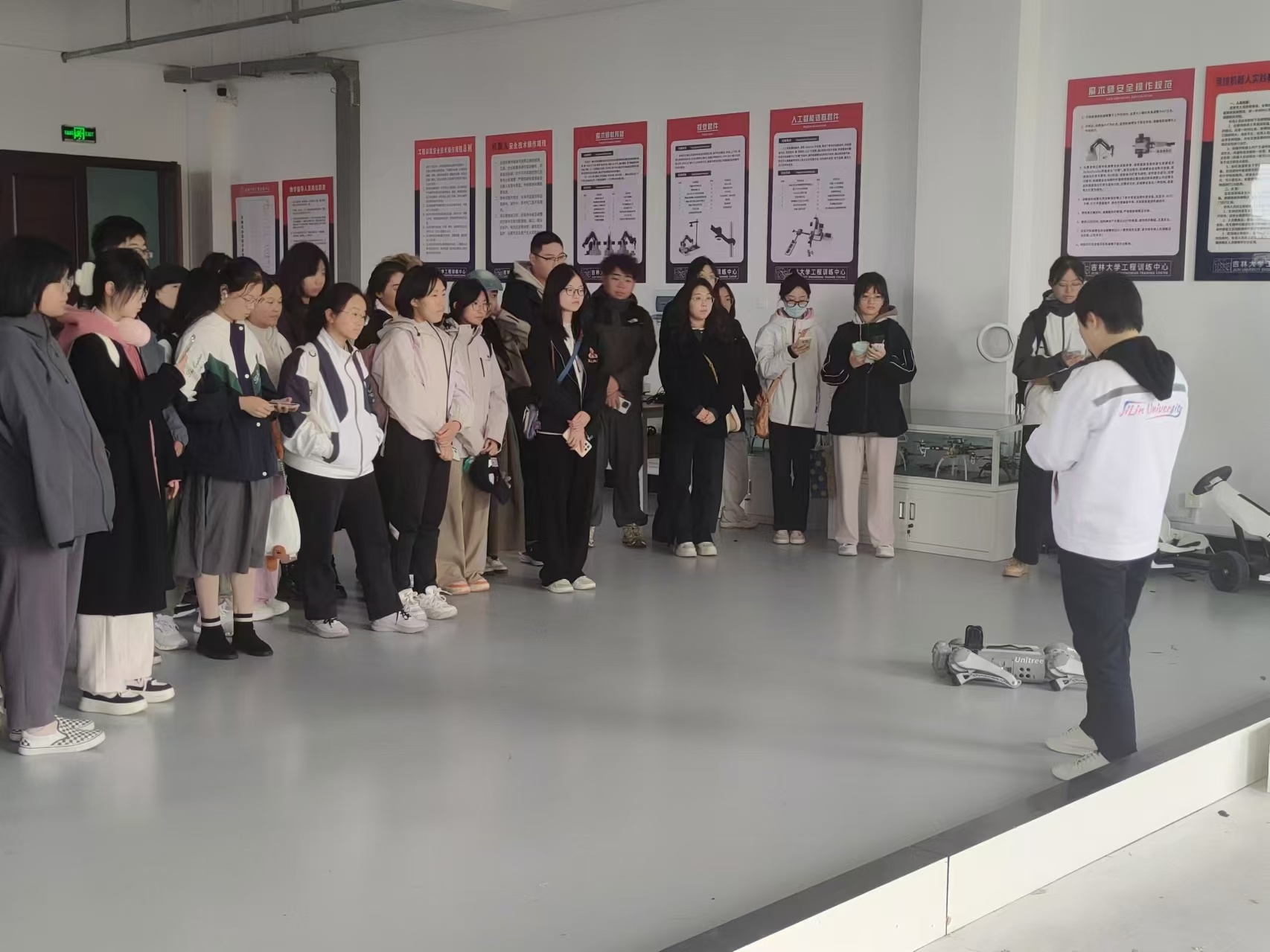 工程训练中心,通过参观学习,更加具体地、直观地感受到科技的发展与变革。在实验室老师的带领下同学们依次参观了智能制造、多线联动、传统加工中心、数控加工中心、激光加工、工业机器人、竞技机械人和3D打印等实验室,并向同学们充分讲解了工程训练的发展历程以及现代化的科学技术。同学们在整个参观过程中,始终保持着高度的热情和专注,他们的眼神中透露出对知识的渴望和对未来的憧憬。这次教育实践活动不仅仅是一次对科技成果的直观体验,更是一次心灵的洗礼,让同学们在未来的艺术创作和学习道路上,多了一份对科技的敬畏和对工匠精神的传承与发扬的决心。