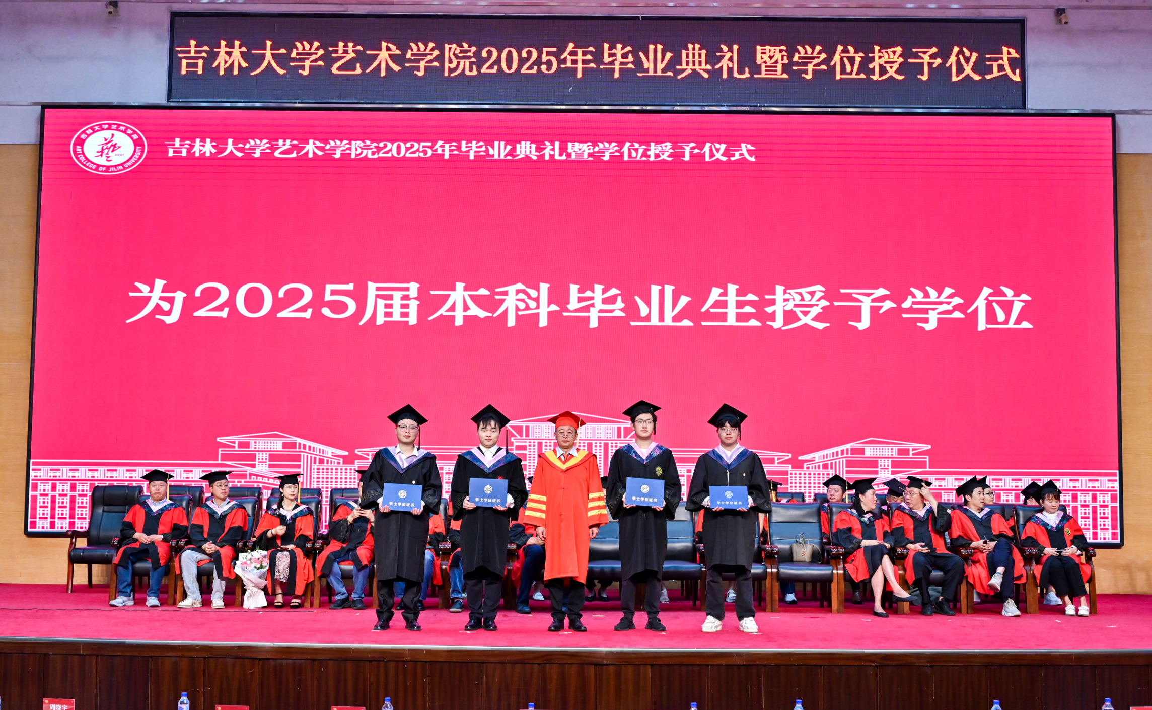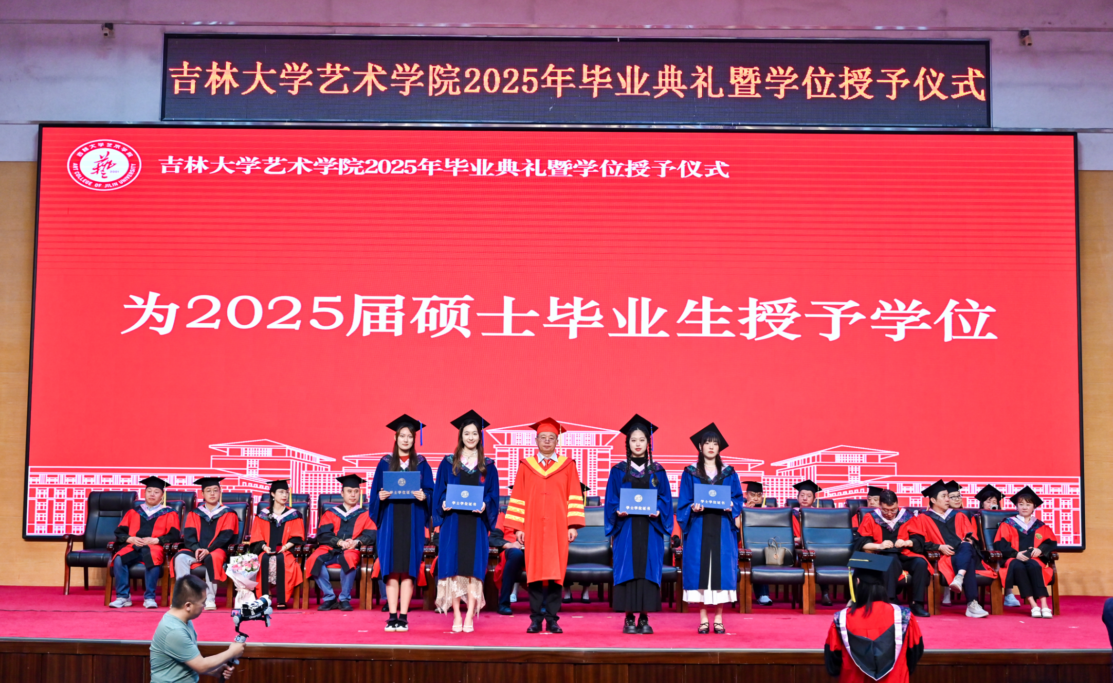 研究生毕业生代表齐致峰同学发言,他回顾了自己从军旅到求学的成长历程,分享了对艺术与美育使命的感悟。他表示,吉大九年求学时光让他深刻体会到艺术学科的价值,不仅是校园文化的重要支撑,更是弘扬中华美育精神的重要途径。他勉励同窗,青春虽有困难挫折,但终将铸就传奇。最后,他祝福祖国繁荣昌盛、母校再创辉煌,并祝愿师长桃李满园,同学们前程似锦。